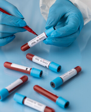 Samples like blood, urine or imaging scans are collected at the diagnostic center and analyzed using modern lab equipment & expert supervision.