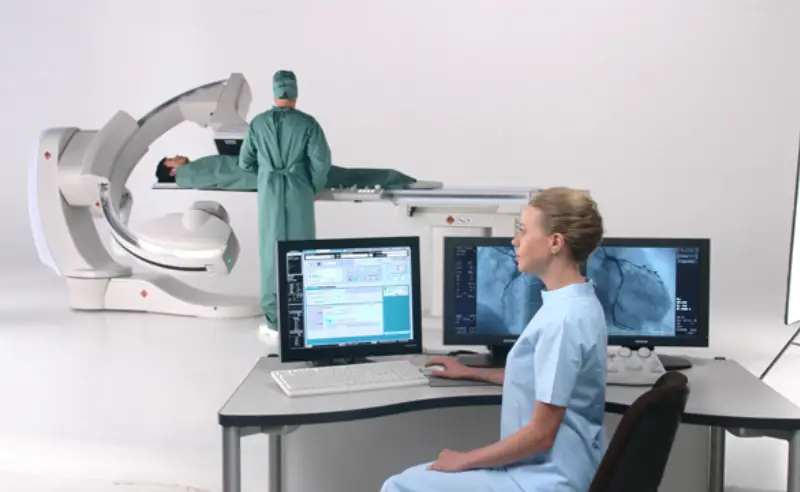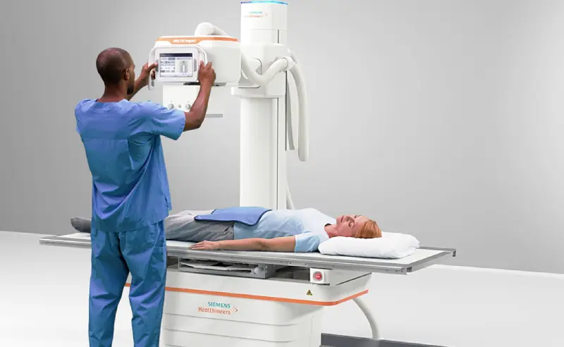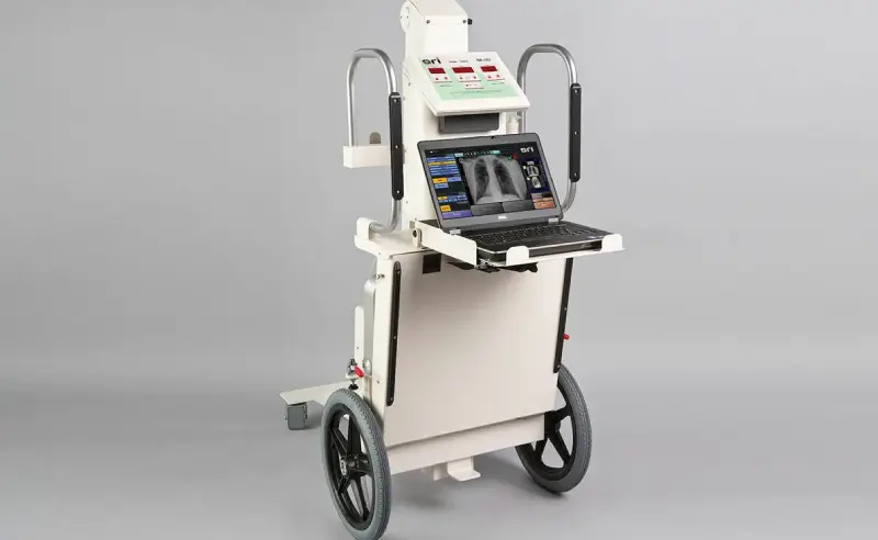 A mobile machine that takes X-ray images at the patient's location, making it easier to get quick results without moving the patient.