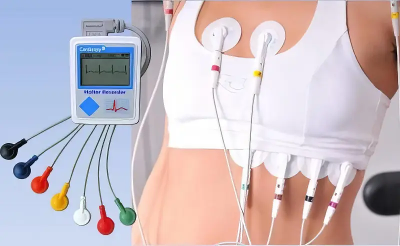A portable device that continuously records the heart's electrical activity for 24 to 48 hours, helping detect irregular heart rhythms.